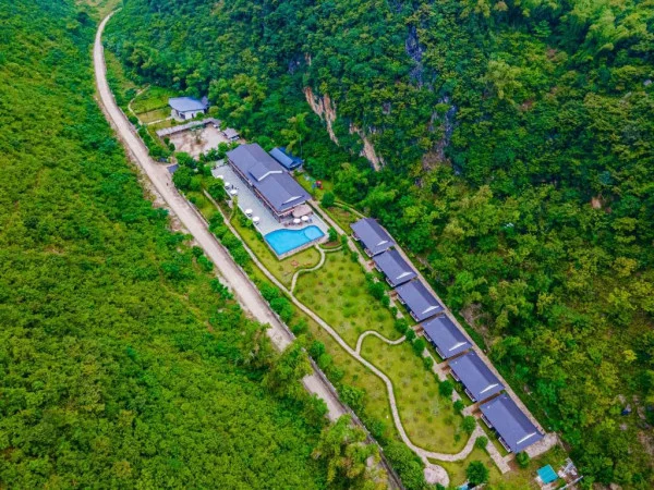 Điều đặc biệt là bể bơi được xây dựng trên nền những khối đá vôi tự nhiên, đặc trưng của vùng đất Hòa Bình, mang đến cảm giác hòa mình hoàn toàn với thiên nhiên. Với diện tích hơn 500m2, bạn có thể tận hưởng những giây phút thư giãn tuyệt đối dưới làn nước xanh trong, ngắm nhìn khung cảnh núi rừng Tây Bắc hùng vĩ.