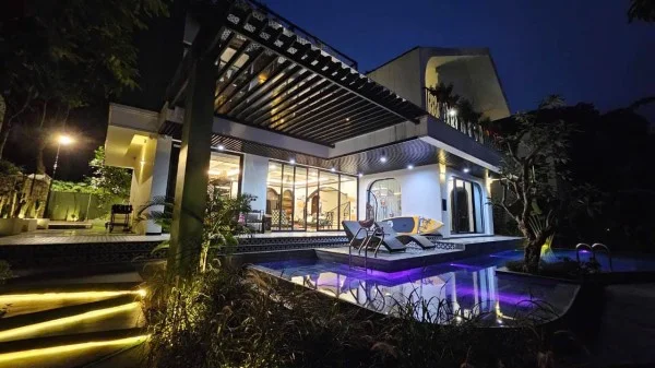 Tiện ích chuẩn mực: Villa được trang bị đầy đủ các khu vực chức năng từ phòng khách sang trọng, bếp nấu tiện nghi đến bể bơi riêng biệt, đáp ứng hoàn hảo nhu cầu của các đại gia đình hoặc nhóm bạn.