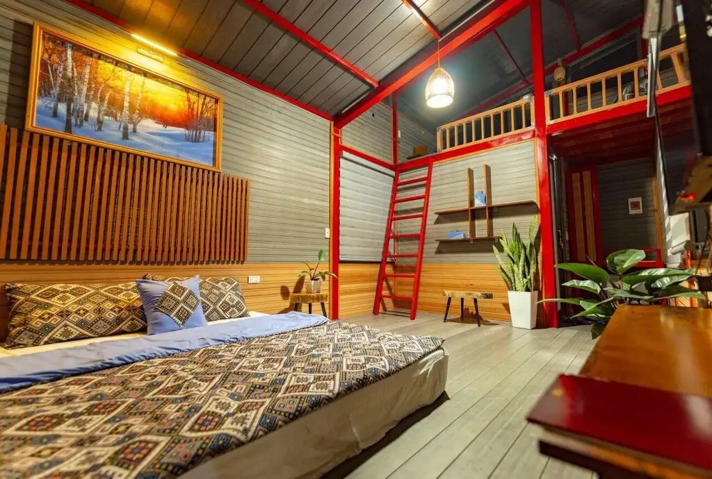 Thiết kế: Sự kết hợp tinh tế giữa nội thất hiện đại và sự bài trí gọn gàng tạo nên không gian nghỉ ngơi lý tưởng cho các cặp đôi hoặc du khách đi công tác.