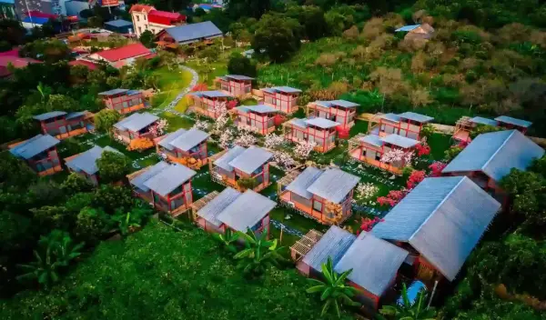 Lấy cảm hứng từ nhà sàn Tây Bắc, các Bungalow tại Viva Mc Eco là sự giao thoa hoàn hảo giữa chất liệu gỗ, mái lá truyền thống và tiện nghi hiện đại: