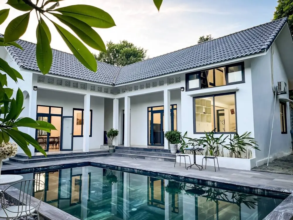 - Tiện nghi: Khuôn viên rộng 1.000m2, hồ bơi, khu BBQ.