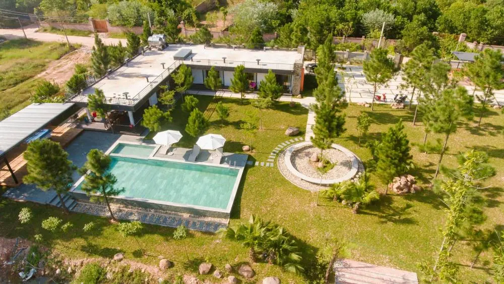 Một trong những villa Sóc Sơn nổi tiếng, Hidden Villa ẩn mình giữa rừng thông xanh mát, mang đến không gian nghỉ dưỡng riêng tư, gần gũi thiên nhiên. Thiết kế kính hiện đại giúp tận hưởng trọn vẹn vẻ đẹp thiên nhiên xung quanh.
