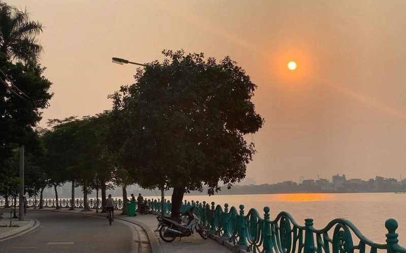 Điều làm nên nét độc đáo của Hồ Tây chính là sắc nước biến ảo kỳ diệu theo thời tiết. Khi xanh trong, khi xám xịt, lúc sáng lấp lánh, lúc tối mờ ảo. Đặc biệt, khoảnh khắc hoàng hôn buông xuống, ánh sáng vàng cam hòa quyện cùng ánh đèn đường hắt xuống mặt nước tạo nên khung cảnh huyền ảo, lãng mạn bậc nhất.