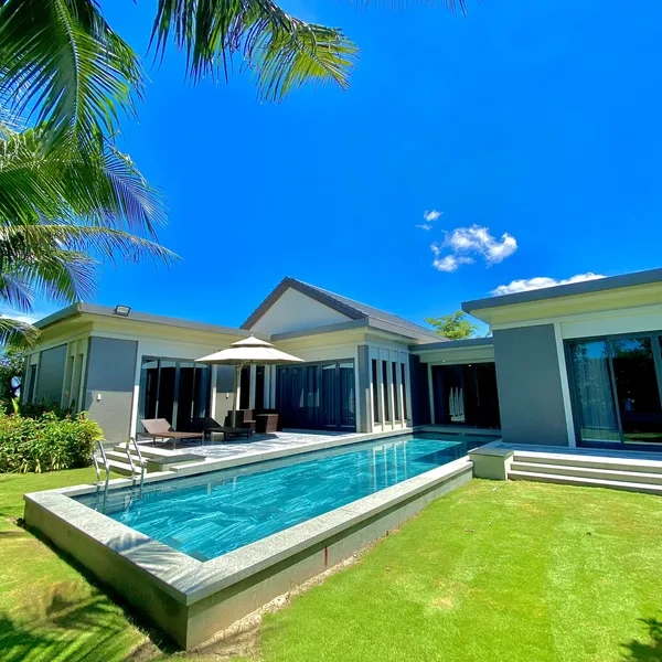 Villa trong resort: giá cao hơn nhưng được dùng đầy đủ tiện ích chung.