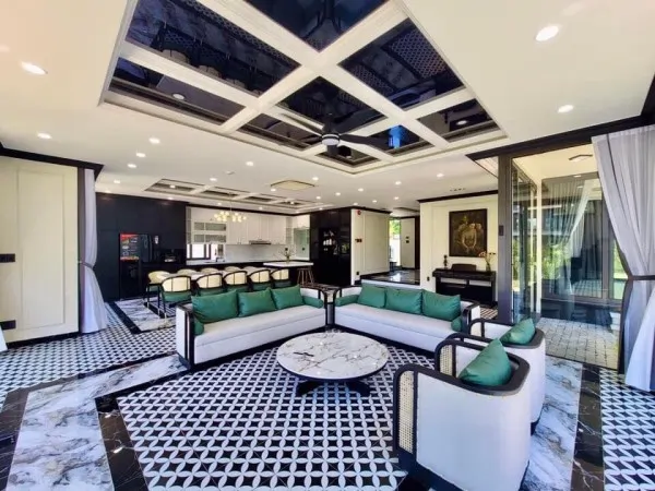 Villa 4–7 phòng ngủ, hồ bơi riêng, phòng khách rộng, bếp đầy đủ, sân BBQ.