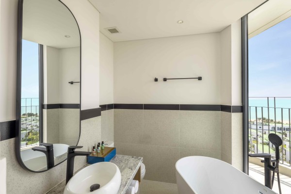 - Phòng tắm cao cấp: Bồn tắm, vòi sen, áo choàng, máy sấy tóc.